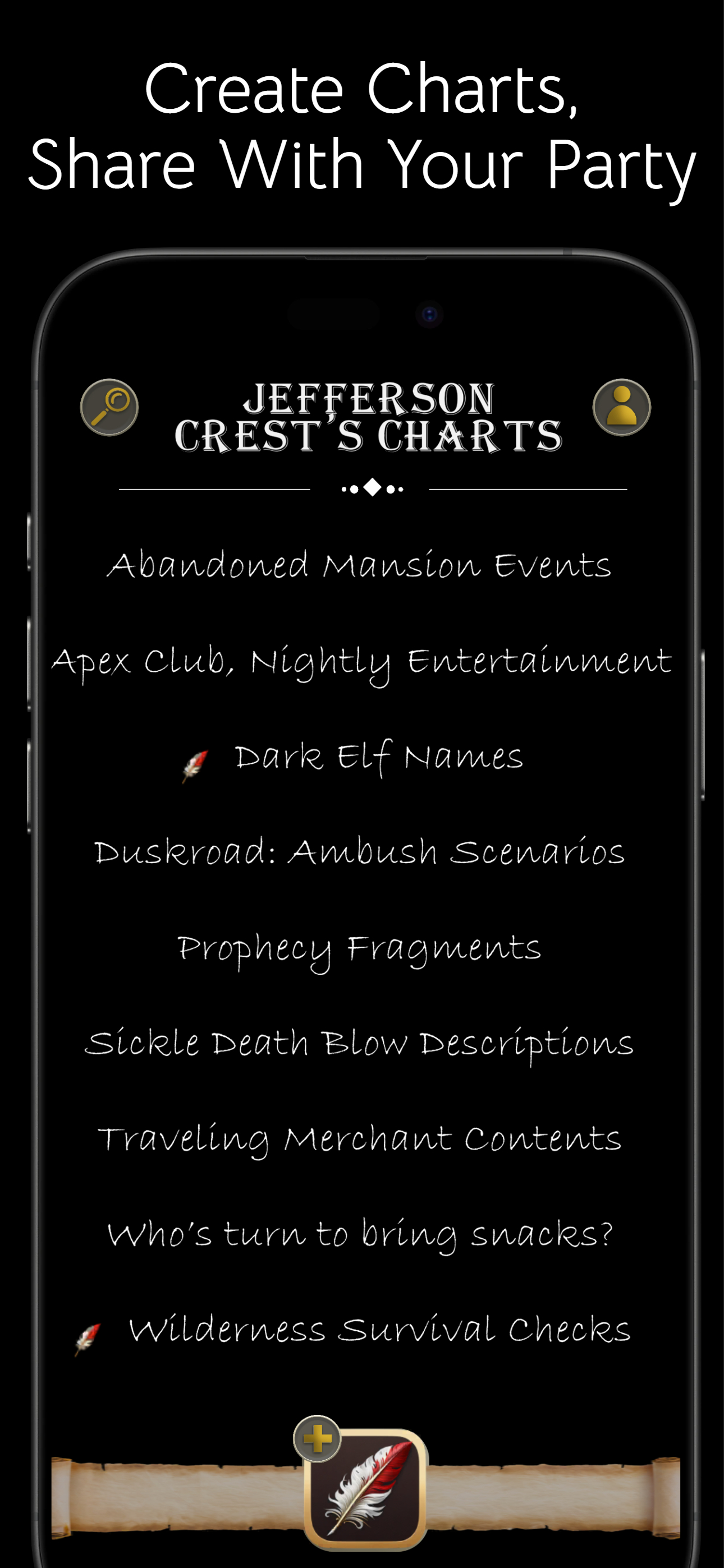 A chart making app that makes prepping random tables and using them during your gaming session a snap.