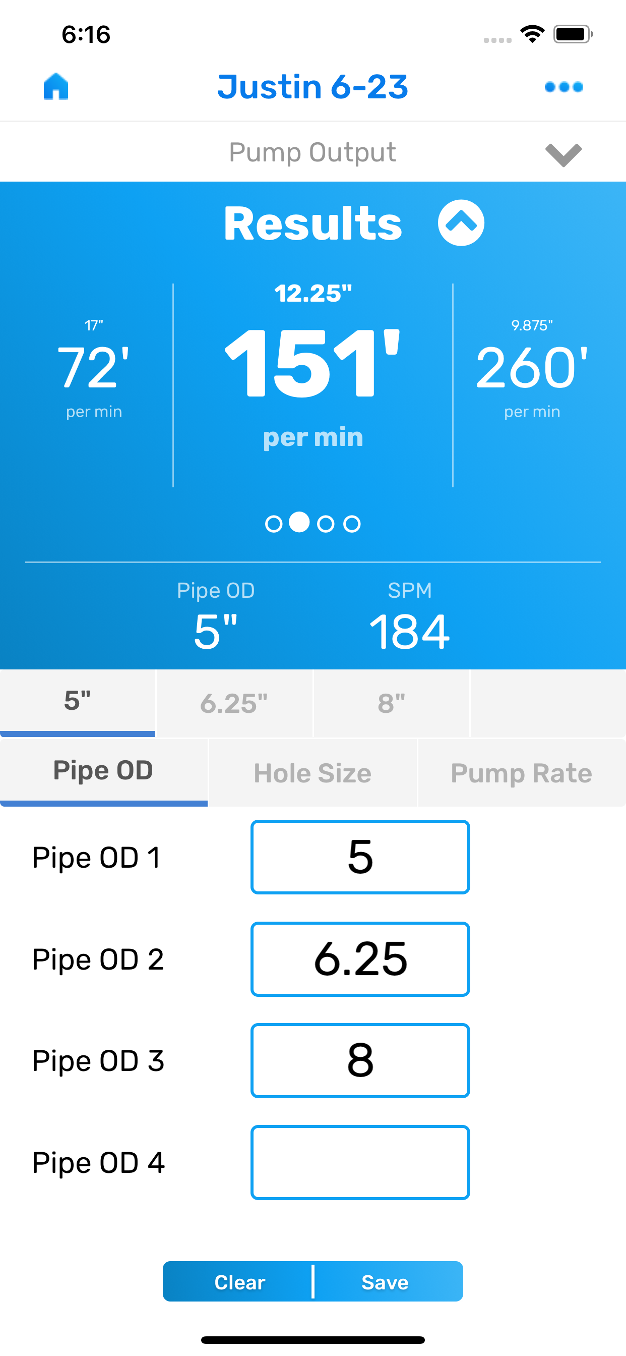 If you work multiple rigs, save different hole and pipe sizes for each job