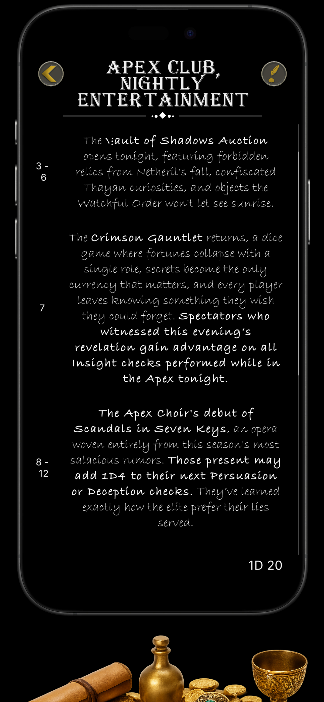 A chart making app that makes prepping random tables and using them during your gaming session a snap.